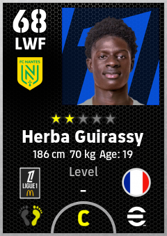 . Herba Guirassy is a Left Wing Forward footballer from France who plays for Fc Nantes in eFootball 2026.