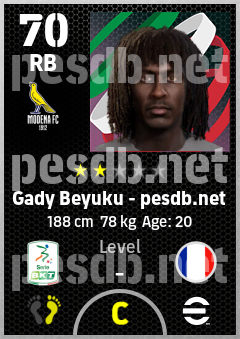 . Gady Beyuku is a Right Back footballer from France who plays for Modena Gb in eFootball 2026.
