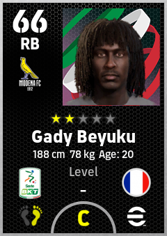 . Gady Beyuku is a Right Back footballer from France who plays for Modena Gb in eFootball 2026.