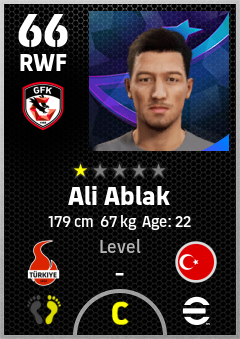 . Ali Ablak is a Right Wing Forward footballer from Türkiye who plays for Gaziantep Fk in eFootball 2026.