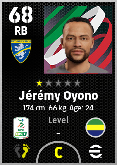 . Jérémy Oyono is a Right Back footballer from Gabon who plays for Frosinone Ga in eFootball 2026.