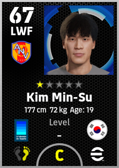 . Kim Min-Su is a Left Wing Forward footballer from Korea Republic who plays for Andorra La Vella Aar in eFootball 2026.