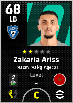 . Zakaria Ariss is a Left Back footballer from Morocco who plays for Sc Bastia in eFootball 2026.