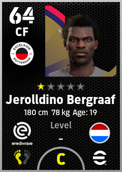 . Jerolldino Bergraaf is a Center Forward footballer from Netherlands who plays for Excelsior Rotterdam in eFootball 2026.