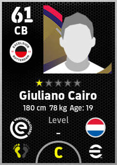 . Giuliano Cairo is a Center Back footballer from Netherlands who plays for Excelsior Rotterdam in eFootball 2026.