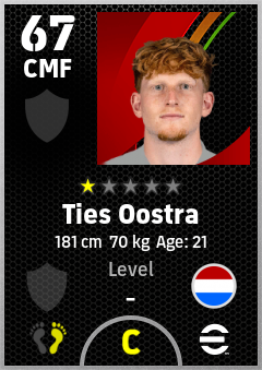 . Ties Oostra is a Center Midfielder footballer from Netherlands who plays for Free in eFootball 2026.
