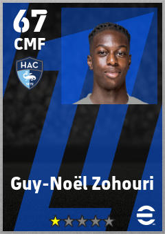. Guy-Noël Zohouri is a Center Midfielder footballer from Côte D'ivoire who plays for Havre Ac in eFootball 2026.