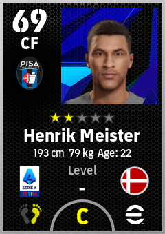 . Henrik Meister is a Center Forward footballer from Denmark who plays for Pisa Sporting Club in eFootball 2026.