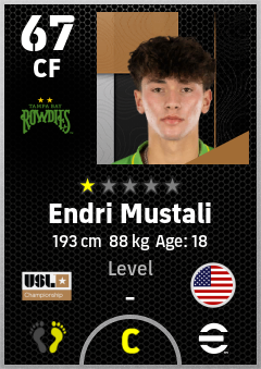 . Endri Mustali is a Center Forward footballer from United States who plays for Tampa Bay Rowdies in eFootball 2026.