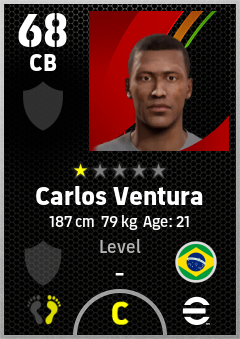 . Carlos Ventura is a Center Back footballer from Brazil who plays for Free in eFootball 2026.