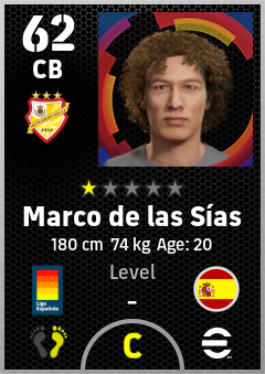 . Marco De Las Sías is a Center Back footballer from Spain who plays for Vallecas Br in eFootball 2026.