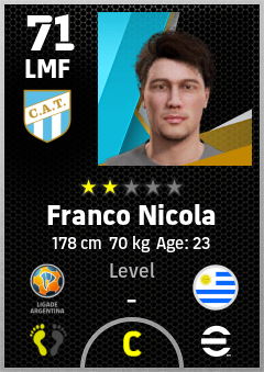 . Franco Nicola is a Left Midfielder footballer from Uruguay who plays for Tucumán Ab in eFootball 2026.