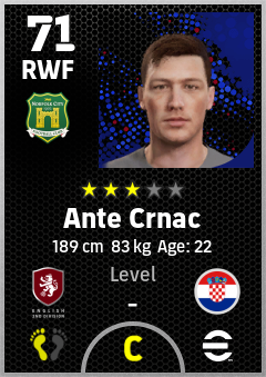 . Ante Crnac is a Right Wing Forward footballer from Croatia who plays for Norwich Yg in eFootball 2026.