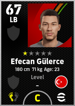 . Efecan Gülerce is a Left Back footballer from Türkiye who plays for Free in eFootball 2026.