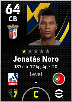 . Jonatás Noro is a Center Back footballer from Portugal who plays for Sporting Braga in eFootball 2026.