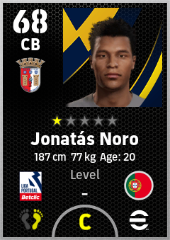 . Jonatás Noro is a Center Back footballer from Portugal who plays for Sporting Braga in eFootball 2026.