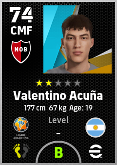 . Valentino Acuña is a Center Midfielder footballer from Argentina who plays for Rosario Rn in eFootball 2026.