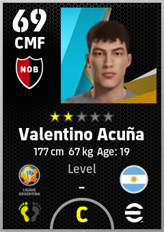 . Valentino Acuña is a Center Midfielder footballer from Argentina who plays for Rosario Rn in eFootball 2026.