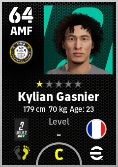 . Kylian Gasnier is a Attacking Midfielder footballer from France who plays for Pau Fc in eFootball 2026.