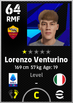 . Lorenzo Venturino is a Right Midfielder footballer from Italy who plays for Roma Gr in eFootball 2026.