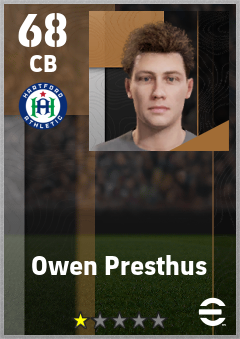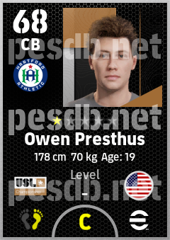 . Owen Presthus is a Center Back footballer from United States who plays for Hartford Athletic in eFootball 2026.