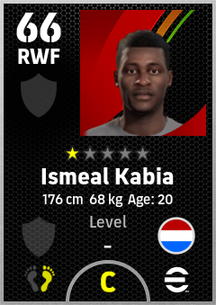 . Ismeal Kabia is a Right Wing Forward footballer from Netherlands who plays for Free in eFootball 2026.