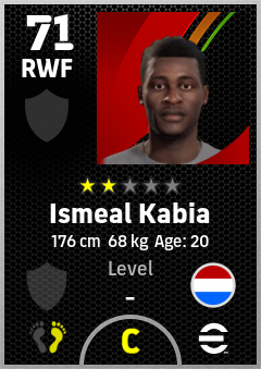 . Ismeal Kabia is a Right Wing Forward footballer from Netherlands who plays for Free in eFootball 2026.