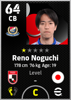 . Reno Noguchi is a Center Back footballer from Japan who plays for Yokohama F. Marinos in eFootball 2026.