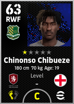 . Chinonso Chibueze is a Right Wing Forward footballer from England who plays for Stoke Rw in eFootball 2026.