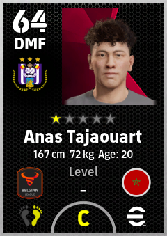 . Anas Tajaouart is a Defensive Midfielder footballer from Morocco who plays for Anderlecht Pw in eFootball 2026.