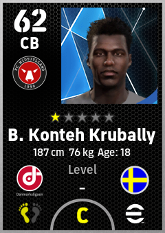 . B. Konteh Krubally is a Center Back footballer from Sweden who plays for Midtjylland Sr in eFootball 2026.