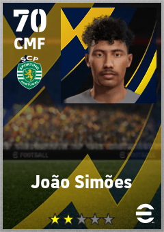 . João Simões is a Center Midfielder footballer from Portugal who plays for Sporting Cp in eFootball 2026.