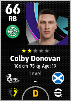 . Colby Donovan is a Right Back footballer from Scotland who plays for Celtic Fc in eFootball 2026.