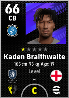 . Kaden Braithwaite is a Center Back footballer from England who plays for Manchester B in eFootball 2026.