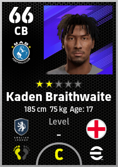 . Kaden Braithwaite is a Center Back footballer from England who plays for Manchester B in eFootball 2026.