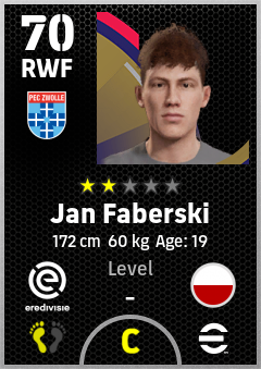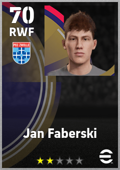 . Jan Faberski is a Right Wing Forward footballer from Poland who plays for Pec Zwolle in eFootball 2026.