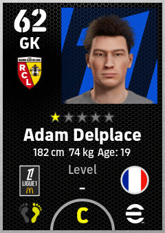 . Adam Delplace is a Goalkeeper footballer from France who plays for Rc Lens in eFootball 2026.