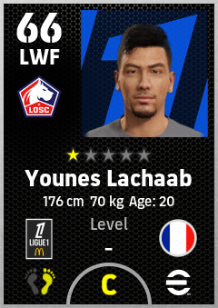 . Younes Lachaab is a Left Wing Forward footballer from France who plays for Losc Lille in eFootball 2026.