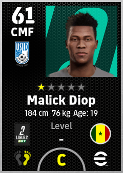 . Malick Diop is a Center Midfielder footballer from Senegal who plays for Usl Dunkerque in eFootball 2026.