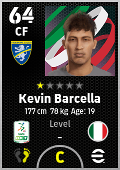 . Kevin Barcella is a Center Forward footballer from Italy who plays for Frosinone Ga in eFootball 2026.