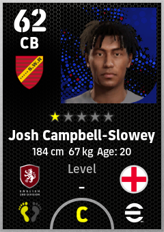 . Josh Campbell-Slowey is a Center Back footballer from England who plays for Bristol R in eFootball 2026.