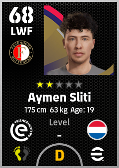 . Aymen Sliti is a Left Wing Forward footballer from Netherlands who plays for Feyenoord in eFootball 2026.