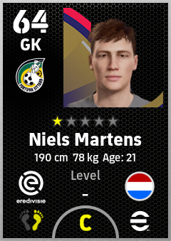. Niels Martens is a Goalkeeper footballer from Netherlands who plays for Fortuna Sittard in eFootball 2026.