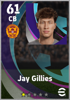 . Jay Gillies is a Center Back footballer from Scotland who plays for Motherwell Fc in eFootball 2026.