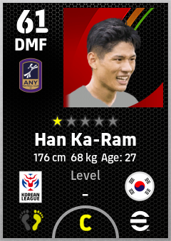 . Han Ka-Ram is a Defensive Midfielder footballer from Korea Republic who plays for Anyang P in eFootball 2026.