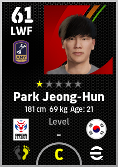. Park Jeong-Hun is a Left Wing Forward footballer from Korea Republic who plays for Anyang P in eFootball 2026.