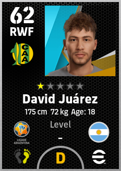 . David Juárez is a Right Wing Forward footballer from Argentina who plays for Mar Del Plata Va in eFootball 2026.