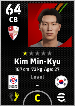 . Kim Min-Kyu is a Center Back footballer from Korea Republic who plays for Gimcheon Rw in eFootball 2026.