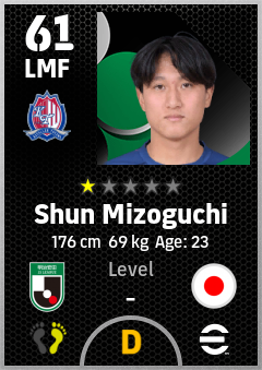. Shun Mizoguchi is a Left Midfielder footballer from Japan who plays for Kataller Toyama in eFootball 2026.