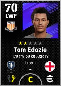 . Tom Edozie is a Left Wing Forward footballer from England who plays for Wolverhampton Yb in eFootball 2026.